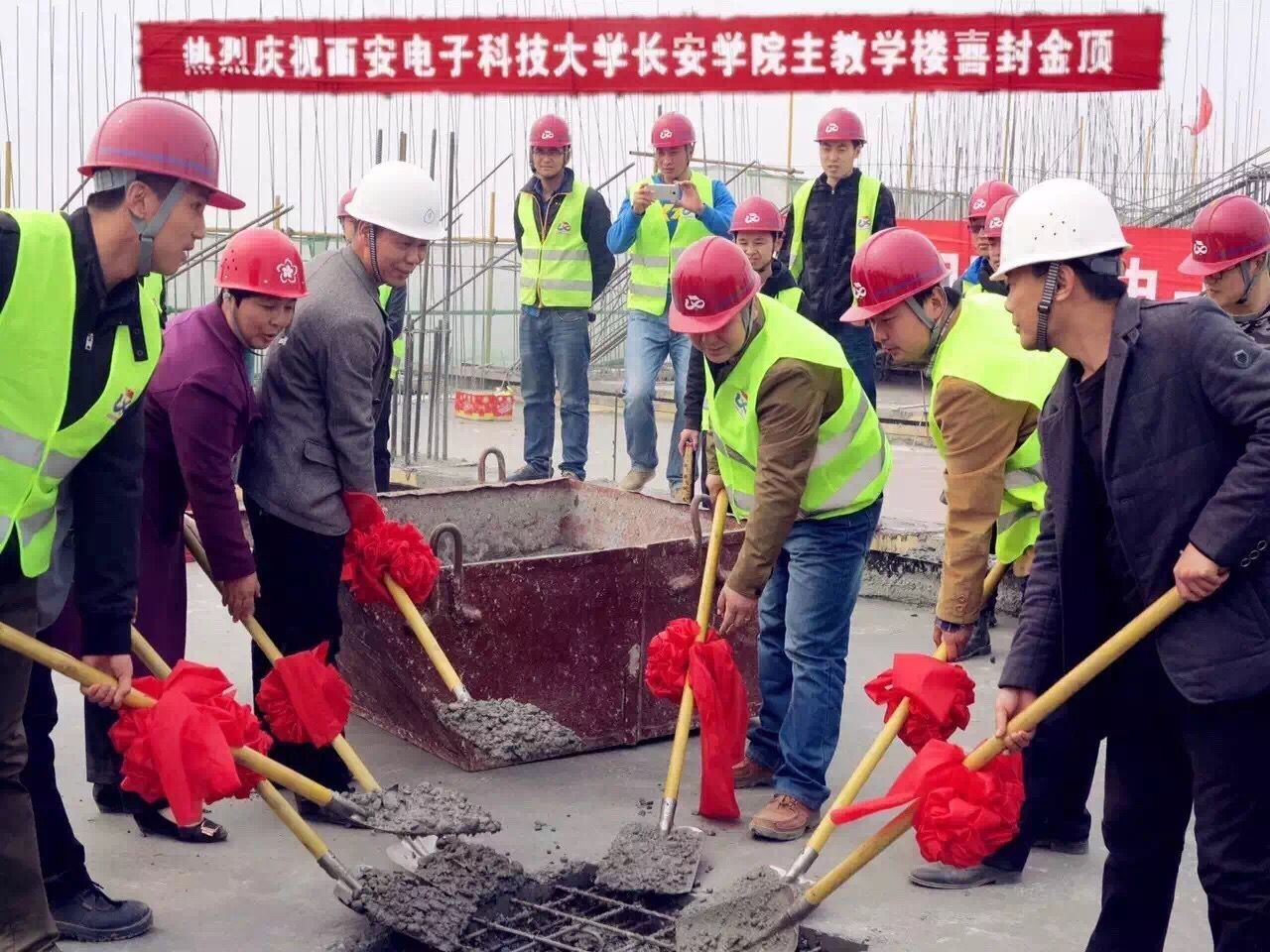 長(zhǎng)安學(xué)院項(xiàng)目部建設(shè)指揮部全體人員、施工單位、設(shè)計(jì)單位、監(jiān)理單位全體參建人員一起參加了封頂儀式。