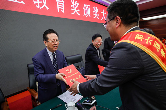 杰出教師獎獲獎?wù)呱吓_領(lǐng)獎