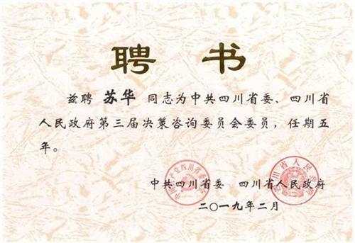 全國政協(xié)委員、民建中央常委、中華職業(yè)教育社副理事長、民建中央科教委員會主任、四川國弘現(xiàn)代教育投資公司(省屬國有企業(yè))董事長蘇華被聘為四川省委省政府第三屆決策咨詢委員會委員。