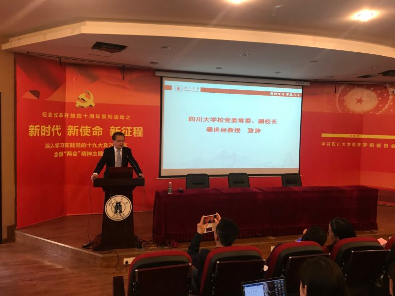 德陽市千山街三段87號(hào)4月10日下午,由四川大學(xué)經(jīng)濟(jì)學(xué)院主辦的“新時(shí)代 新使命 新征程”深入學(xué)習(xí)貫徹十九大及2018年全國(guó)“兩會(huì)”精神校友主題論壇在經(jīng)濟(jì)學(xué)院西202學(xué)術(shù)報(bào)告廳舉行。
