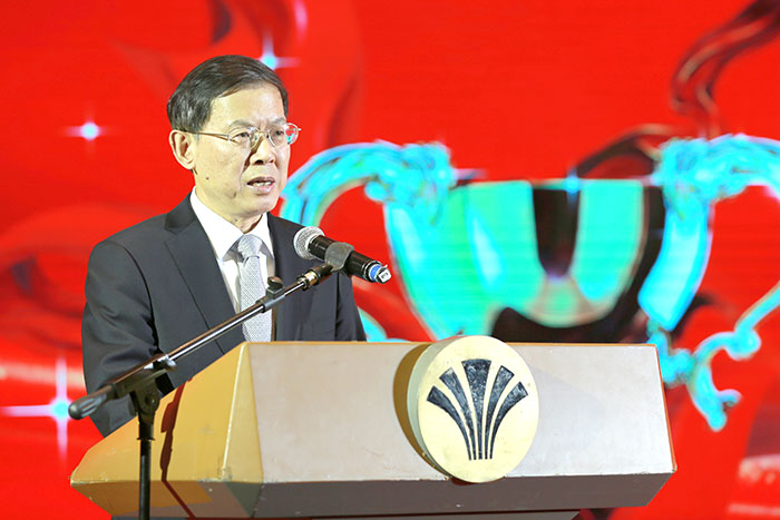 全國人大常委會副委員長、中華職業(yè)教育社理事長郝明金出席頒獎儀式并講話,他在講話中指出,一是要大力營造創(chuàng)新創(chuàng)業(yè)的濃厚氛圍。要充分認識開展創(chuàng)新創(chuàng)業(yè)教育對國家和民族長遠發(fā)展的重要性,統(tǒng)一思想,凝聚共識,服務(wù)支持職業(yè)院校開展創(chuàng)新創(chuàng)業(yè)教育、培養(yǎng)創(chuàng)新創(chuàng)業(yè)人才,積極探索、勇于實踐,努力構(gòu)建科學(xué)合理、運轉(zhuǎn)協(xié)調(diào)、指導(dǎo)有力的服務(wù)體系,大力營造有利于職業(yè)院校學(xué)生創(chuàng)新創(chuàng)業(yè)的濃厚氛圍;二是牢牢把握創(chuàng)新創(chuàng)業(yè)的產(chǎn)業(yè)大趨勢。黨中央、國務(wù)院著眼于全球產(chǎn)業(yè)發(fā)展和變革大趨勢,提出要大力發(fā)展新興科技產(chǎn)業(yè),促進我國經(jīng)濟深層次轉(zhuǎn)型升級。本屆大賽比賽項目涉及電子信息、機械能源、生物醫(yī)藥、新材料等許多新產(chǎn)業(yè)、新領(lǐng)域,要通過強化新領(lǐng)域、新技術(shù)、新產(chǎn)業(yè)的創(chuàng)新探索和創(chuàng)業(yè)實踐,全面提高創(chuàng)新能力,努力構(gòu)建新的產(chǎn)業(yè)體系,以重要領(lǐng)域和關(guān)鍵環(huán)節(jié)的突破,帶動全局發(fā)展,不斷增強我國經(jīng)濟的國際競爭力;三是認真抓好創(chuàng)新創(chuàng)業(yè)的成果轉(zhuǎn)化。黨的十八大以來,國家出臺了各類創(chuàng)新創(chuàng)業(yè)扶持政策,優(yōu)化創(chuàng)業(yè)環(huán)境,大力支持和推動院校學(xué)生創(chuàng)新創(chuàng)業(yè)。我們要在組織各類創(chuàng)新創(chuàng)業(yè)比賽的同時,必須在抓好成果轉(zhuǎn)化和項目落地上下功夫、做文章,努力使這些創(chuàng)新成果轉(zhuǎn)化為現(xiàn)實生產(chǎn)力;四是努力提高創(chuàng)新創(chuàng)業(yè)的實際成效。職業(yè)教育是國計也是民生。各職業(yè)院校要認真落實黨中央、國務(wù)院決策部署,牢記職業(yè)教育使命,勇挑培養(yǎng)新時代技術(shù)技能人才重擔,站在國家發(fā)展的高度,聚焦國家產(chǎn)業(yè)發(fā)展趨勢,創(chuàng)新人才培養(yǎng)模式,重構(gòu)人才知識結(jié)構(gòu),完善科教結(jié)合、產(chǎn)教融合,校企合作協(xié)同育人機制,為我國經(jīng)濟社會發(fā)展培養(yǎng)高素質(zhì)綜合型人才,肩負起新時代賦予職業(yè)教育的歷史使命。